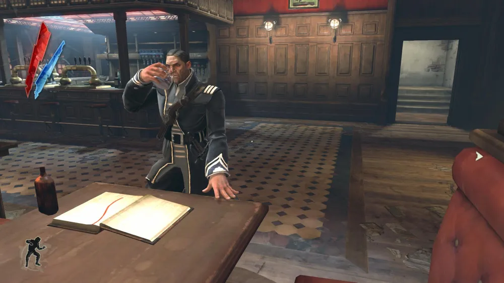 Корво просыпается в своем жилище на чердаке паба. Открыв глаза, он видит перед собой слова — «поговорите с Хевлоком». «Магия, ага», — подумал главный герой. Спустившись вниз, он застал адмирала и лорда Пендлтона. Благородные господа, как обычно, бухают.