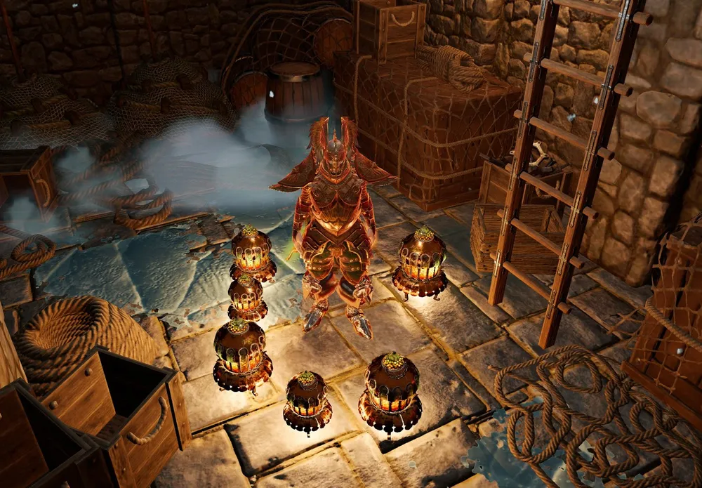 Вот и отлично – двадцать первый уровень! Можно идти в поход на торговцев, но сначала учёный предпочёл спуститься в подвал на левой стороне пристани. Не зря он таскал с собой лампы, подобранные в консульстве ящеров: лютый холод почти моментально парализовывал любого спустившегося в подвал, и… что тогда? Напарника, способного разморозить, нет! Учёный вынул из рюкзака лампы, установил – работает!