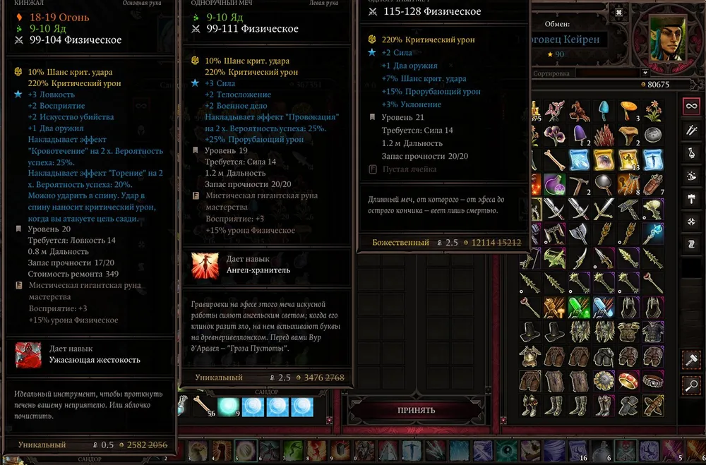 Оружия лучше, чем Сандор нашёл, купить было просто невозможно: урон хорош, но добавочные характеристики никуда не годятся.