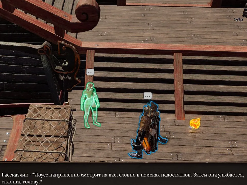 Всё-таки чертовски жестокий мир создали эти Творцы… Ну почему неприсоединившиеся спутники обязательно должны погибнуть? Неужели они не могут просто пребывать на палубе «Госпожи Мести»? Впрочем, учёный полагал, что знает причину: Творцы Мира в заботах о своём любимом «балансе» побоялись, что герои будут путешествовать со всеми спутниками по очереди – и получат «слишком много» опыта; поэтому выбрали самый простой путь - убийство спутников…