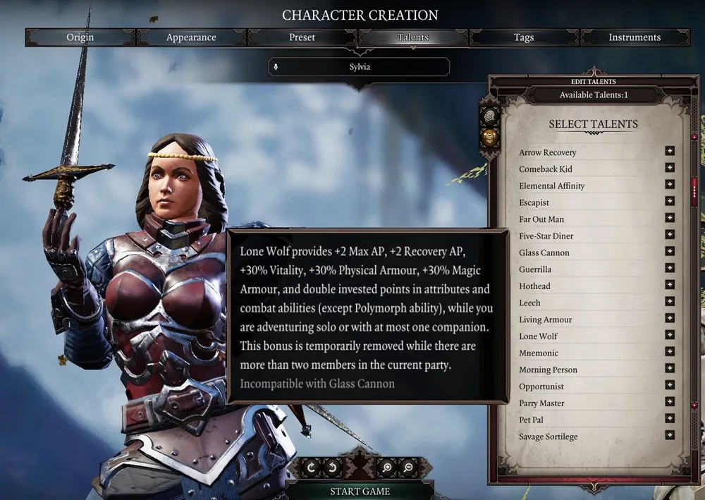 Теперь это утверждение стало ошибочным. Дело в том, что наконец-то вернулся талант «Одинокий волк» (УРА! Как точно я угадал с названием предыдущей статьи!), и взять его можно сразу же, при генерации.