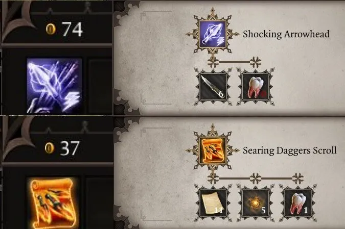 Ещё одна мелкая неприятность: вы ни за что не угадаете, какие именно ингредиенты нужны для изготовления того или иного изделия. Я израсходовал зубы на изготовление наконечников для стрел, а позже они пригодились для написания магических свитков. Впрочем, оказалось, что компоненты свитка стоят дороже, чем стрелы, стрела наносит больший урон, а её цена при продаже – выше.