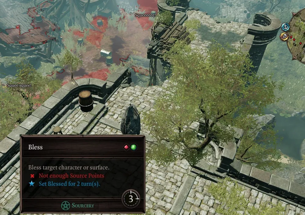 О! Тут двумя предложениями не отделаться! Получил «Благословение», подкрался сверху к горящим свинкам: что за?! Почему не активируется?! Нужна магия Источника?!?!?! Да вы в своём уме?!?!?!