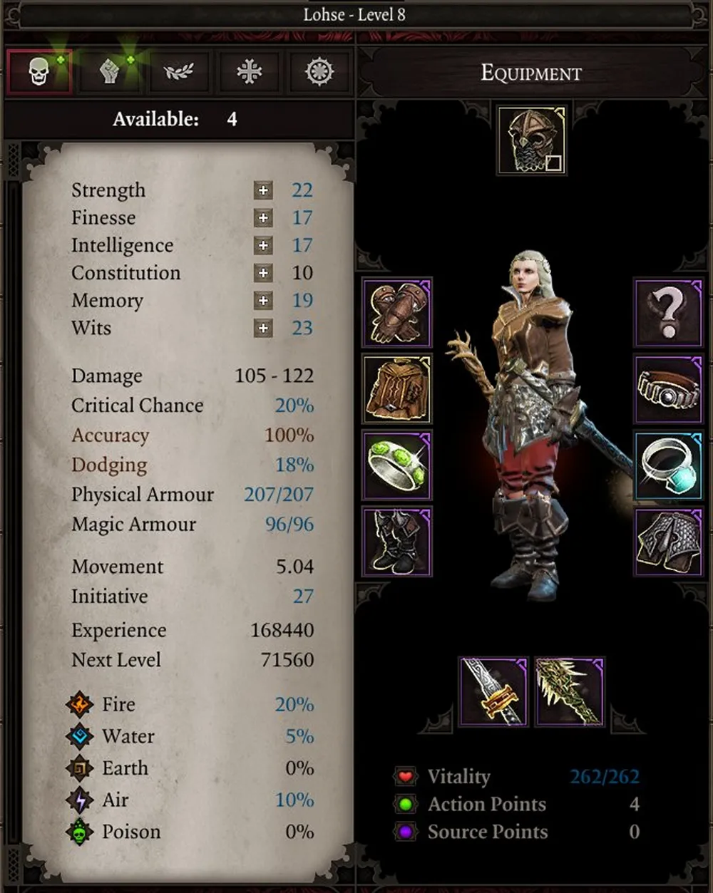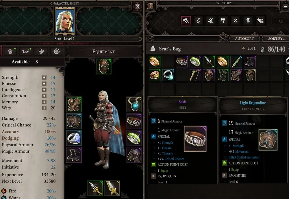 Так и не понял, баг это или нет: неизвестные предметы второго уровня опознаются лишь в случае, когда навык развит у самой героини. Можно увешать её всю амулетами и кольцами с бонусами, но для опознавания предмета придётся бежать к торговцу.