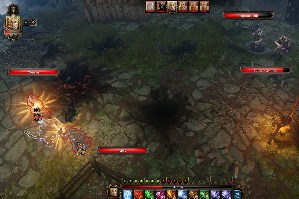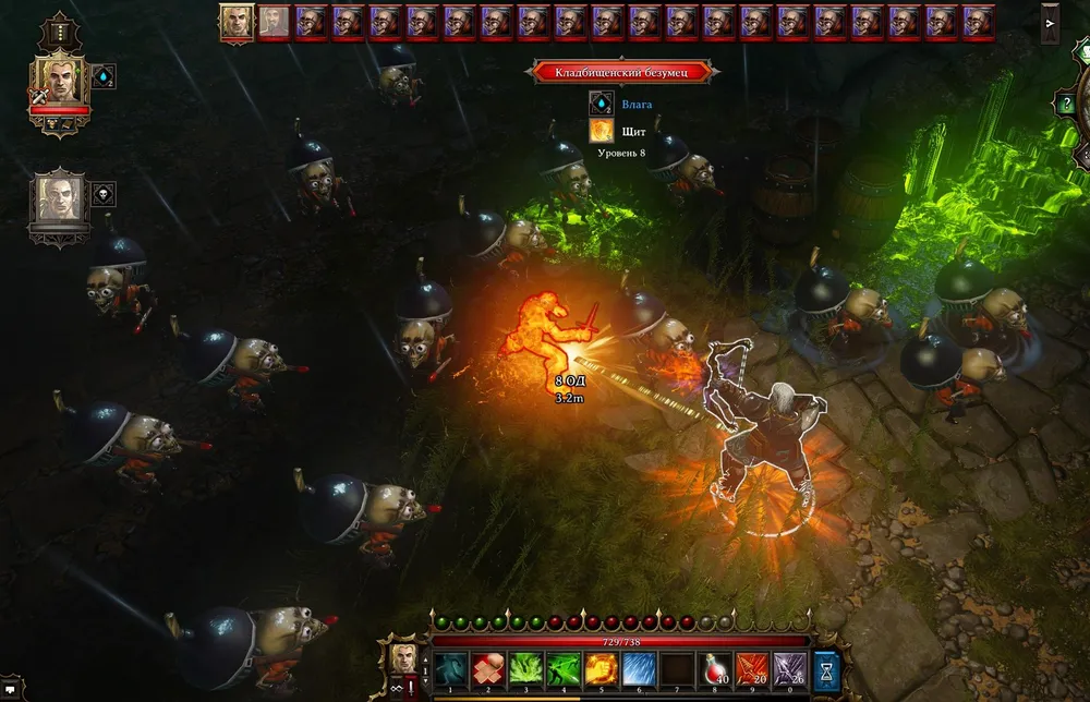 Отряд охраны из пяти орков на входе в Могилу рыцаря исчез в огненном вихре, и Грутильда осталась в гордом одиночестве. Ярлу повезло больше: в его распоряжении была тюремная стража. Но викинг спустился в подвал и уравнял шансы предводителей.