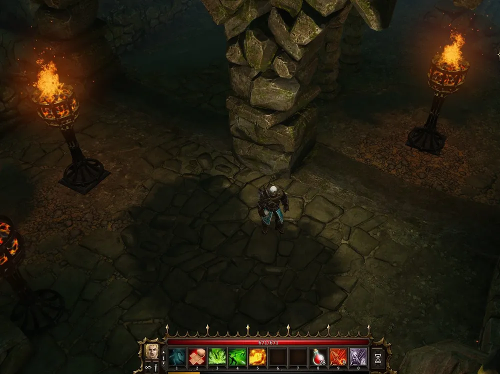 Немного возобновив запас, Олаф быстро покончил с обитателями Огненных полей и принялся очищать от нежити окрестности собора. Тамошние скелеты были посерьёзнее «западных», далеко не всегда удавалось покончить с ними одним выстрелом.