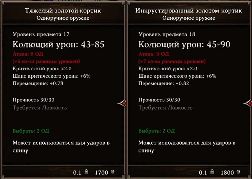 Если ваше умение «Кузнечное дело» равно восьми единицам, то имеет смысл перековывать все найденные золотые ножи в сабли – при продаже последние стоят гораздо дороже ножей. За редким исключением: при входе в Храм Мёртвых вам попадутся два уникальных золотых клинка, перековывать которые не стоит: их ценность превышает сабельную. Причём стоимость этих клинков можно увеличить при помощи заточки.