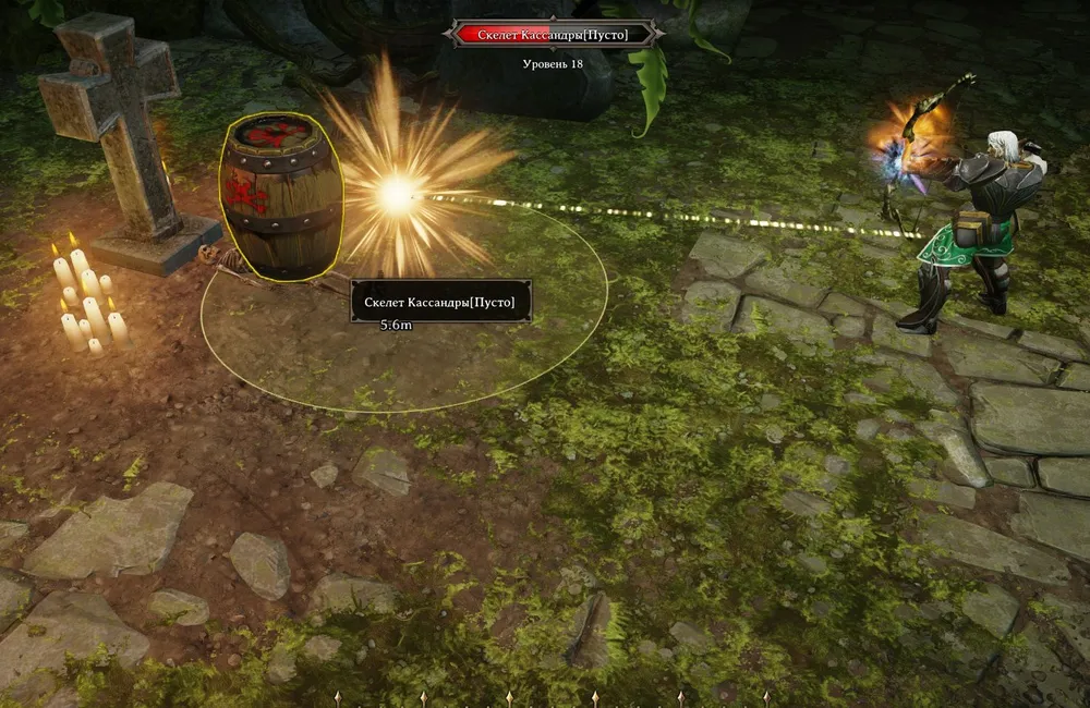 Сказано – сделано. Олаф добрался до Кассандры, поговорил с ней и отправился искать Храм Мёртвых. Тайное прицеливание показало, что викинг просто не сможет попасть стрелой в большинство врагов, а некоторые из них вообще неуязвимы.