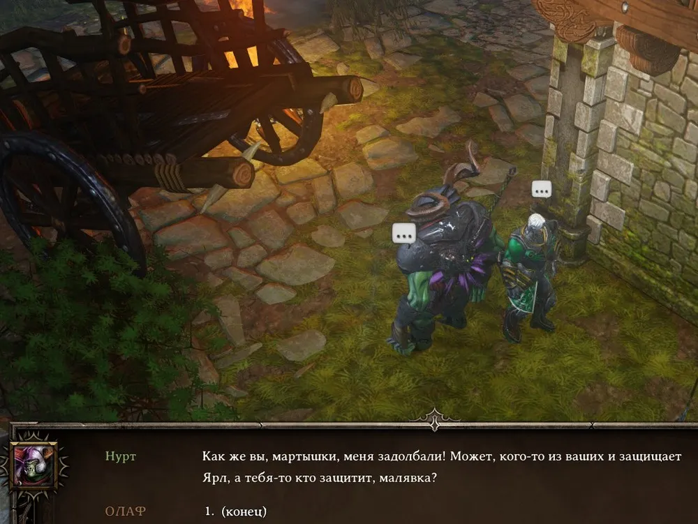 Упрёки, обвинения, угрозы, Грутильда произносит финальную фразу диалога, и… неведомо откуда появляются три громадных орка! До ушей потрясённого викинга донеслось слово его создателя: «Скрипт!»