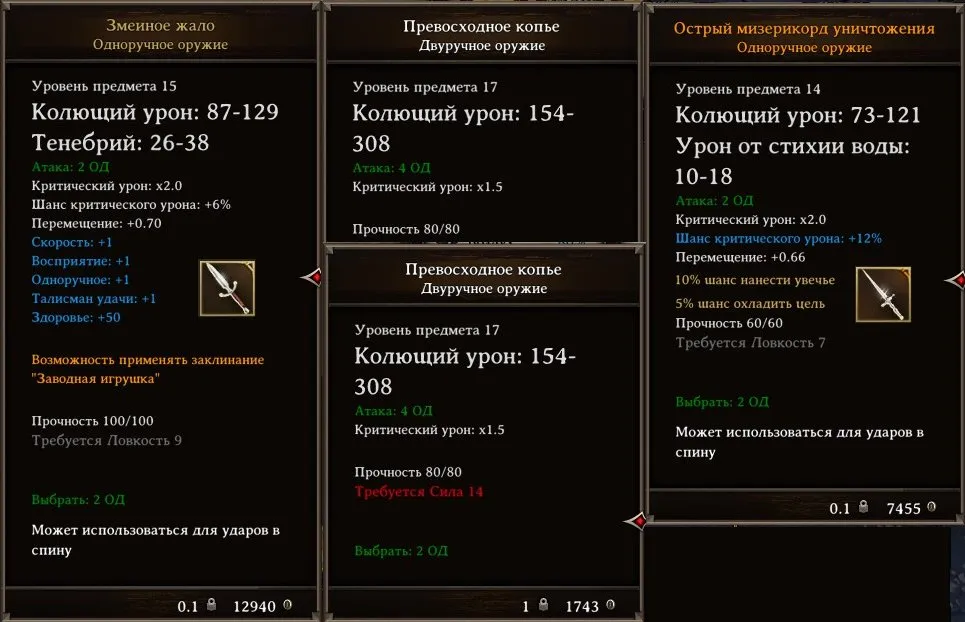 Знаете ли вы, что – увы! – изготавливаемые своими силами копья имеют ограничение по убойной силе? Казалось бы, при «Рукоделии» восемь единиц - чем лучший короткий клинок будет использован, тем более эффективным должно получиться копьё. На самом деле как бы ни был хорош кинжал-нож, копьё не сможет превысить уровень урона 154-308.