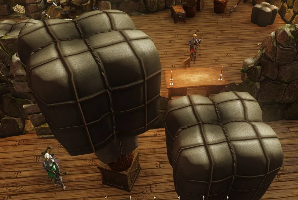 Знаете ли вы, что лучшее рабочее место до открытия оружейной в Конце Времён можно организовать на вилле Сайсила? Портал – рядом, под рукой несколько наковален и плавильная печь. Устанавливаем полевую кухню (смотри ЗВЧ 2) для приготовления пищи и обработки кожаных доспехов – готово.