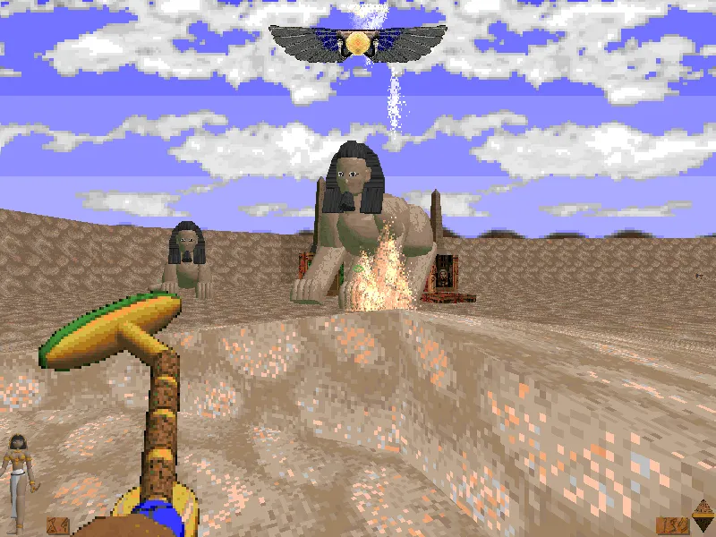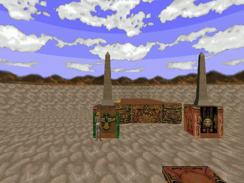 Вообще надо сказать, что Chosen не просто еще один wad для Doom 2. Это отдельная игра, использующая свои собственные ресурсы (графика, звук и тд.). Атмосфера Древнего Египта воссоздана достаточно качественно. Египетские пирамиды, древние боги, чудовища, вся атрибутика в комплекте. В игре присутствует несколько видов оружия. Особенно впечатляют шустро летающие метательные топорики, способные уложить практически любого врага. Есть и своя система несложных, но интересных загадок. Которые делают уже нескучный процесс прохождения еще более разнообразным.