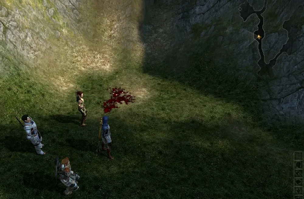 Таллис немного не дождется помощи от оставшихся двух спутников и с легкостью вскроет замки (вопрос только – чем, если оружие и приспособления у пленников должны были отобрать), а тут подоспеют остальные. Воссоединившись (и получив от спутника снаряжение, а если вы шли только с Таллис - обретя его из воздуха), вы можете пройти через темницы или подняться в подвалы. Первый путь более короткий и простой, а второй – более интересный.