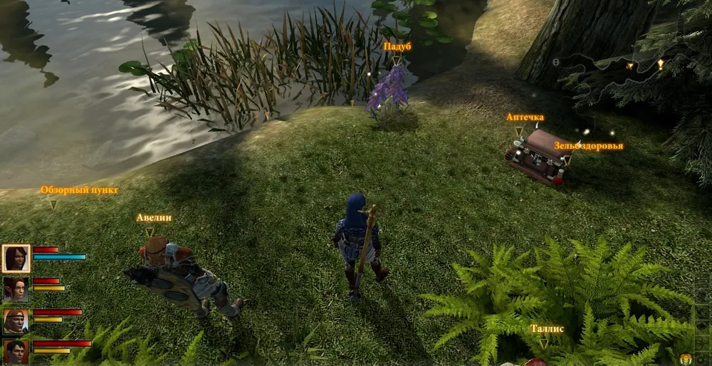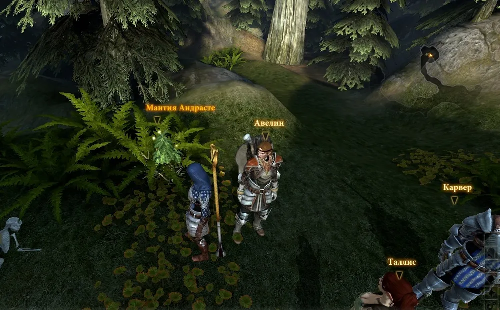 Чуть позже она представится как Таллис и расскажет, что искала кого-то, кого пригласили в замок Эн, и попросит Хоука о помощи в небольшой воровской операции. Кстати, с ней можно даже пофлиртовать, что сразу вызовет некоторый негатив со стороны вашего пассии, присутствовавшего в группе, а по окончании дополнения вы даже получите поцелуй. После разговора вы сразу отправитесь в замок Эн, и лучше бы заранее по максимуму освободить рюкзак для лута. Торговец на карте будет, но только в первой части дополнения, когда вы еще толком не успеете набрать трофеев.