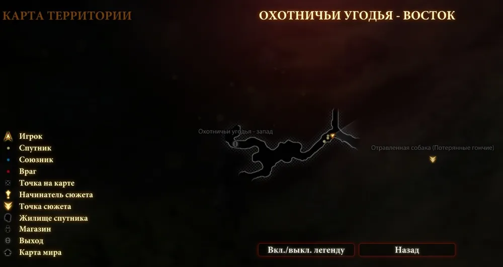 Егерь, потерявший своих собак, стоит в западно-центральной части западных угодий. В принципе, если вы поглядываете на карту, пропустить его нереально. Один из псов выбежит вам навстречу в восточных угодьях. Если вы не брали квест у егеря, то получите его в этой точке автоматически.