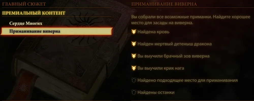 На охоте воспользуйтесь всеми найденными вами приманками, чтобы убить виверна-вожака