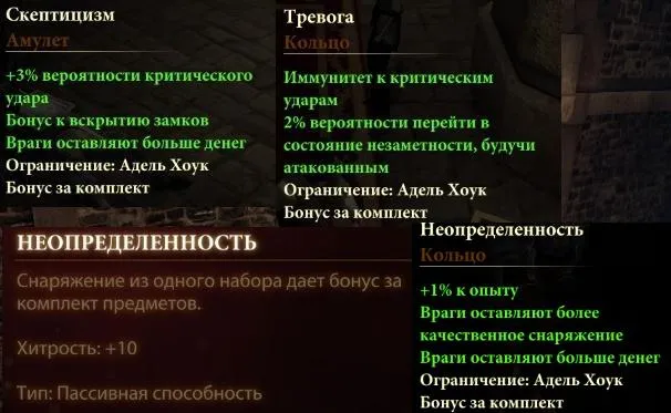 * Неопределенность – ночью в замке, при нахождении амулета или колец из сета (если идете «тихо», если с боем – северо-западная комната;