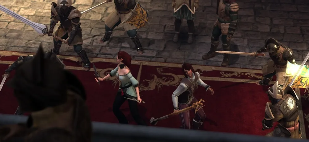 В его поисках вы наткнетесь на несколько знакомых вам лиц – тут будет и Лелиана, и банн Теган с эрлессой Изольдой (если она не погибла в "Начале"), и сенешаль Бран с печально известным трансвеститом из «Розы», и леди Элегант, у которой вы заказываете зелья (правда, сегодня у нее будет выходной), и некоторые другие. В зависимости от вашего прогресса в основном сюжете игры диалоги разнятся.