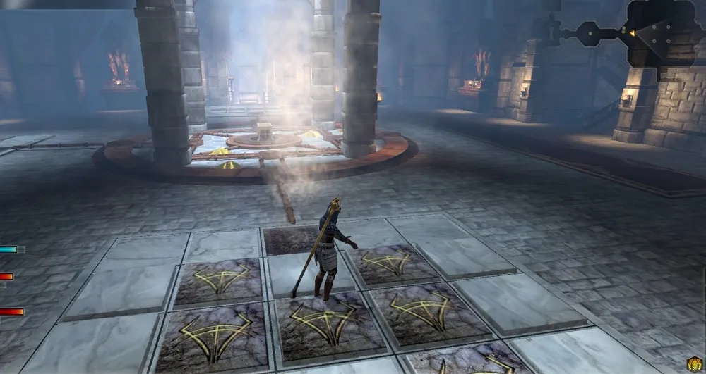 Потом вы выйдете в комнату с решетками, которые опустятся как только вы проникнете внутрь. Чтобы миновать ловушку, поставьте Таллис и Хоука на выступающие плиты на полу, и поочередно продвигайте их к новым плитам. Зайдя в углы, уроните на плиты статуи, заблокировав их, и двиньтесь к сундукам на нижнем ярусе. Там, кстати, находятся немаленькие денежные средства, однако лучше сделать сейв – аддон может сглючить, и сундуки станут неактивными прежде чем вы их обчистите.
