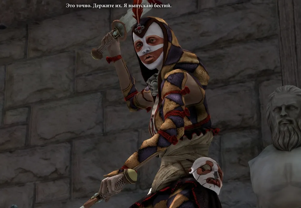Зато в ходе почти дружеской беседы герцогом Проспером вы узнаете, что Таллис не только убийца (кто бы сомневался, глядя на ее умения), но еще и кунари (символ на доспехе выглядит убедительно), а потом вас переправят в казематы замка. Тут вы сможете капитально потрясти вашу новую знакомую на предмет утаиваемой ранее информации и ее истинных мотивов – у Защитника разговор выйдет более эмоциональным, чем у Хоука, еще не успевшего победить Аришока. Таллис, оказывается, хочет помешать сделке, которая принесет много проблем мирным кунари, кои, оказывается, тоже существуют.