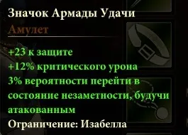 Получаете, только если в группе есть Изабелла. Нужно собрать три кулона в замке. Они лежат у камина на кухне, в комнате с решетками и в темницах. Сам тайник находится на склоне горы и прячет специальный амулет.