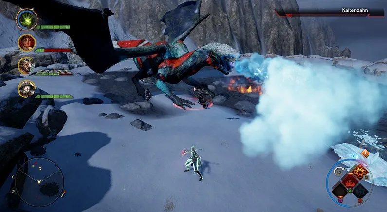 Не стоит забираться «Кальтенцану» под брюхо. Как только ее шкала здоровье упадет ниже пятидесяти процентов, она издаст мощный рев, оглушив при этом всю партию и призвав на помощь дракончиков. Лучше сразу же уничтожить малышей, иначе они доберутся до ваших магов и тогда пиши пропало.