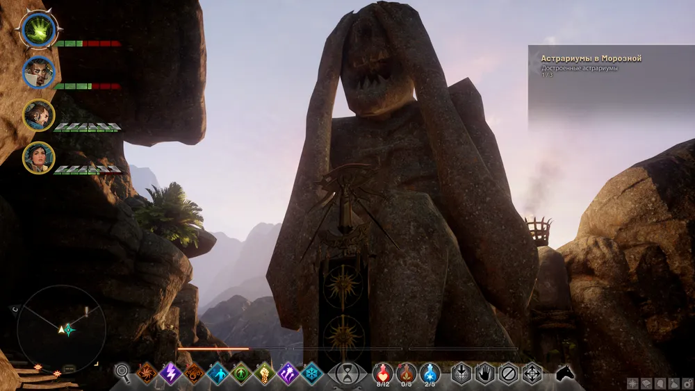 Если вам не хватает исследований в основной кампании, то тут все для вашего удовольствия. Три астрариума (один из которых у меня не заработал), три окуляриума с двенадцатью осколками, неочевидные ориентиры, мощные разрывы и тевинтерские руины. Награда за покорение котловины весьма щедрая - я обновила гардероб фиолетовым оружием, а ведь пришла уже после победы в основной части. Впрочем, посоха мечты для леди Инквизитор не нашлось, поэтому гораздо больше меня порадовали аваррские торговцы. Заманчивые эскизы четвертого уровня и третий в игре торговец с бесконечным запасом простеньких лечебных трав, очень удобно. Вкусные материалы для рун можно выковырять из демонических останков, а с тел местных жителей можно снять ткань, защищающую от холода. Вообще после полного покорения Котловины мороз вас больше не побеспокоит - собранные осколки можно тут же и потратить на открытие волшебной ледяной комнатки, аналогичной храму в Оазисе, и серьезно повысить свою устойчивость к стихии.
