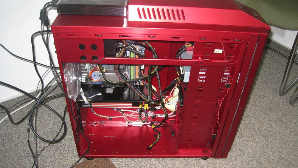 Красное и черное. Черное — это внешний диск и видеокарта. Красное — это все остальное.