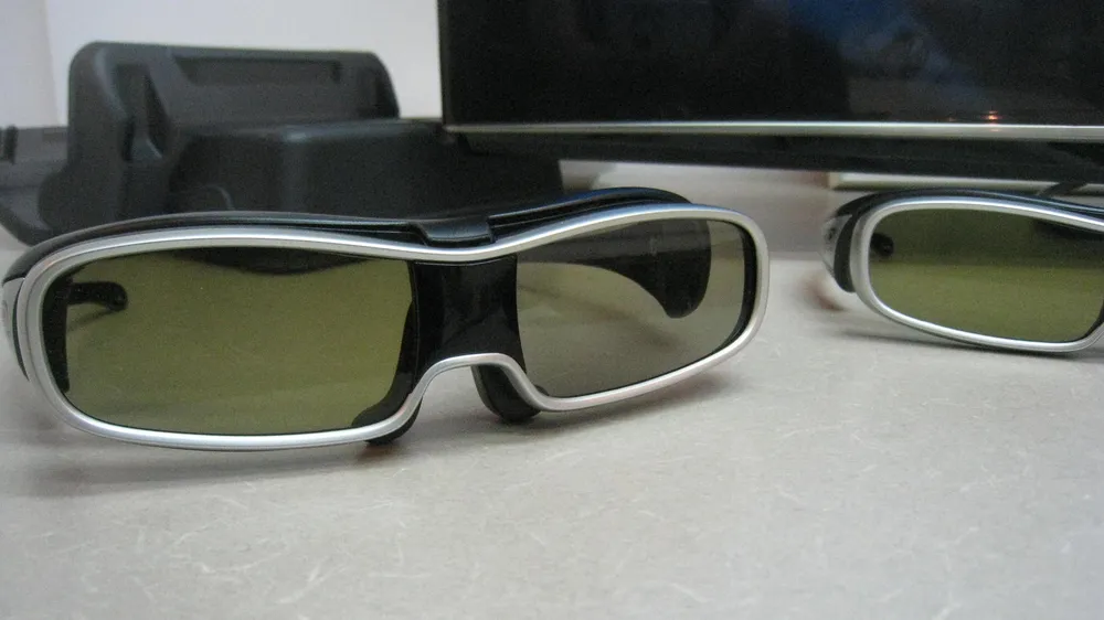 Железная, т. е пластиковая часть 3D заключалась в активации вот таких футуристических очков путем тыканья в маленькую пимпочку сбоку.