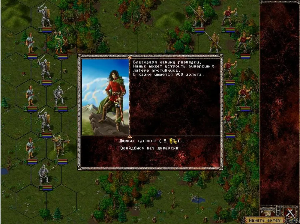 У разведчика есть умение, позволяющее производить диверсии в начале каждой битвы. У меня пока навык не сильно развит, поэтому в арсенале только один тип диверсий— ложная тревога. Она отнимает выносливость у противника.