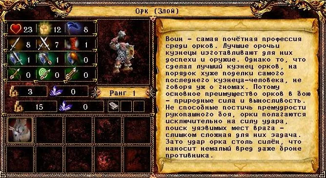 Т.е. наши бойцы. Условно они делятся на "добрых", "нейтральных" и "злых". Делятся не зря- если вы злой, у "добрых" войск будет хуже Боевой Дух и наоборот. Аналогичная ситуация у "злых". И только нейтралам все ни по чем.