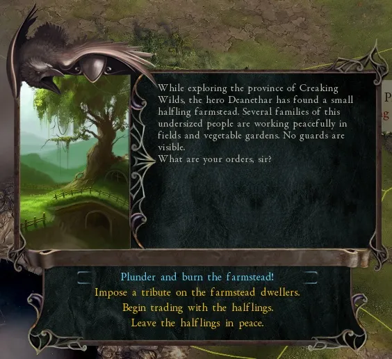 Эффект кармы очевиднее всего проявляется на стратегическом уровне. В провинциях под нашим контролем практически каждый ход происходит то или иное событие, и то, как мы на него реагируем, определяет изменения в репутации нашего персонажа. Отказали в помощи жителям провинции, страдающим от чумы? Будте готовы к тому, что выжившие поднимут восстание несколько ходов спустя. Вторгаетесь в орочью провинцию, будучи злым Владыкой? Вы вполне можете рассчитывать на теплый прием—орки ненавидят этих дебильных эльфов и целителей не меньше вашего.
