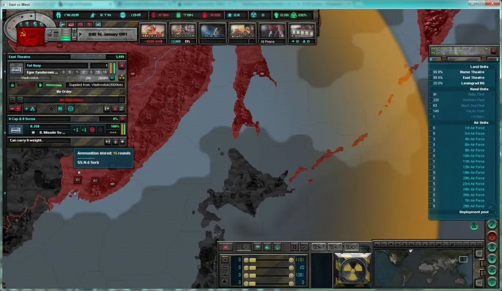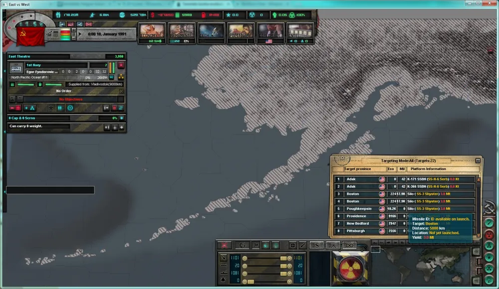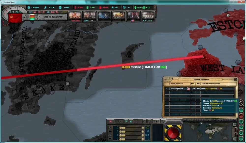В 7-м дневнике разработчиков игры East vs West обсуждаются аспекты внедрения ядерного оружия в геймплей, включая интерфейс, управление ядерным арсеналом и последствия ядерных ударов. Разработчики стремятся сохранить баланс между реализмом и играбельностью, избегая излишнего микроменеджмента и обеспечивая стратегические элементы ядерного противостояния.