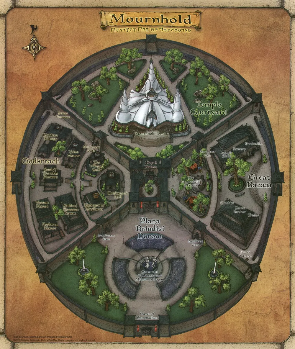 Ура, я в столице! Но куда направится? С кем говорить? Как быть на незнакомой территории? Надо реализовываться и самоутверждаться, я же в столице! И тут было бы не лишним вспомнить за каким **** меня сюда потянуло? Ах да, на меня же напало темное братство, пора бы пойти с этим разобраться. От местных жителей узнаем, что суппостаты прячутся в канализации базара. А пока я с ними разбираюсь, предлагаю вашему вниманию карту города: