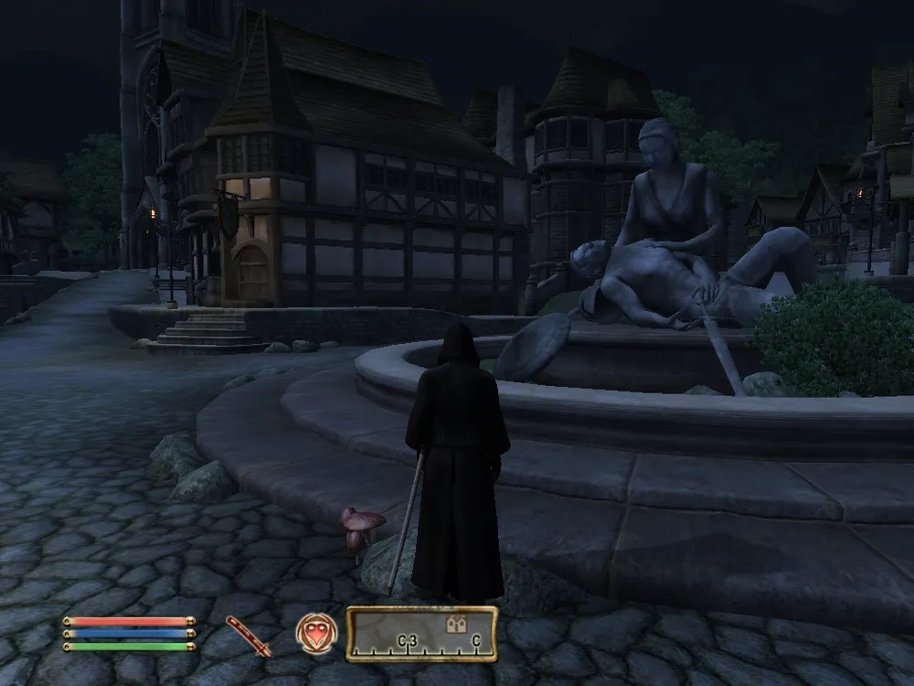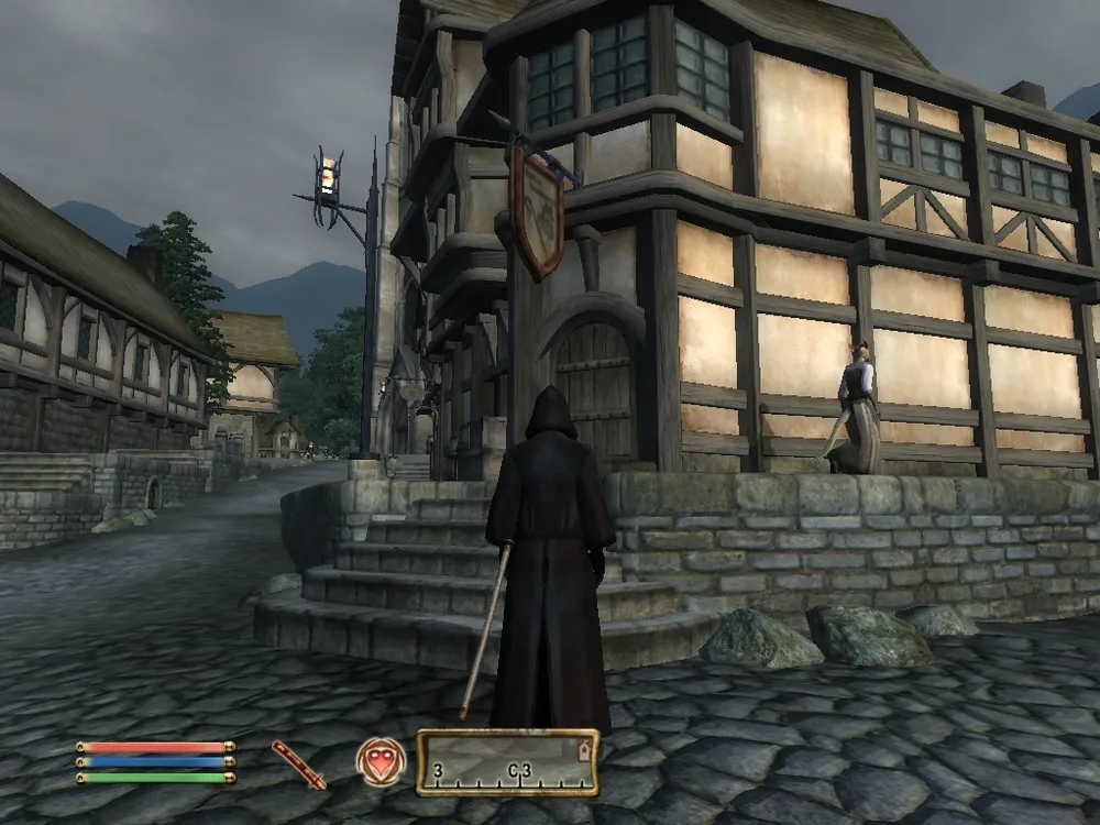 Огромные резные ворота города послушно впустили меня, здесь я был не раз и не два, потому таверну отыскал без труда. Хозяйка трактира, не торопливо собирает мне припасы, бережно складывает их в потрепанный кожаный мешок. Я стою не шелохнувшись, молчу и смотрю в пол, длинный плащ не привлекает внимание, широкий капюшон скрывает лицо. Когда мешок набит съестным до отказа, рассчитываюсь пригоршней монет. Мой кошелек становиться намного легче, я вновь вешаю его на пояс, ещё пара недель и покупать еду мне станет не на что. Милая хозяйка желает мне доброго пути, я, ответив ей улыбкой и кивком головы, медленно направляюсь к выходу. Всё как я ожидал, никому нет дела до старика-паломника, который зашел в город пополнить запасы. В тот момент, когда уже практически достиг входной двери, чувствую, как кто-то одергивает меня за рукав. Спокойно оборачиваюсь, предо мной стоит старый хаджит, тощий и долговязый, уши вздернуты от удивления, маленькие чёрные глаза прищурены и радостен оскал, обнажающий наполовину стёртые клыки.