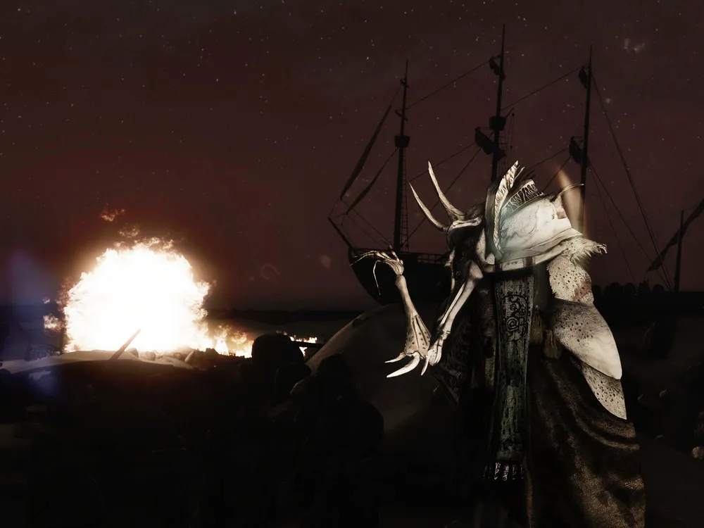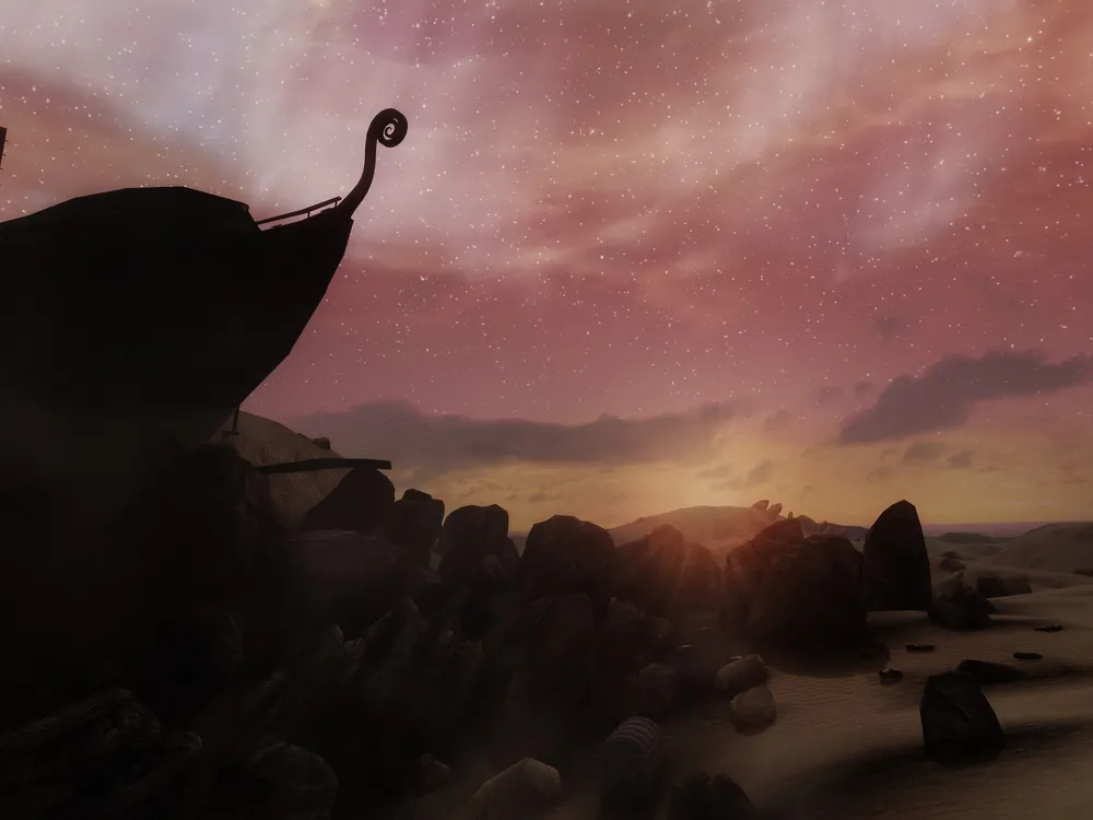 На первом скриншоте из серии можно увидеть посла Телванни и Искру, проходящую каждую ночь по пустыне и сжигающую на своем пути всех существ, кроме порождений Рыбака.