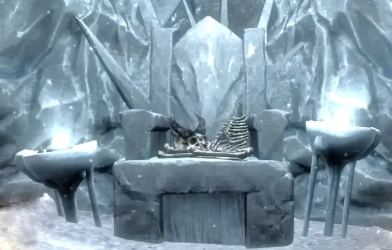 Подходите к трону и кладите череп, после этого появится фантом Карстаага. Ледяной гигант любит морозную школу и все что с ней связано. Сразу после своего появления он призовет ледяную бурю, которая будет наносить неплохой урон жизни и выносливости героя, так что у вас с собой должны быть зелья. Лучше всего бить его огненными заклинаниями, или огненным мечом или «кричать» на него огнем. Так или иначе, он будет побежден, а вы отпразднуете и получите подарок. Вы сможете призывать его во время битвы, чтобы он вам помогал, вот такие дела.