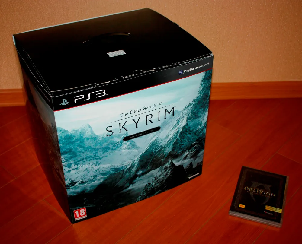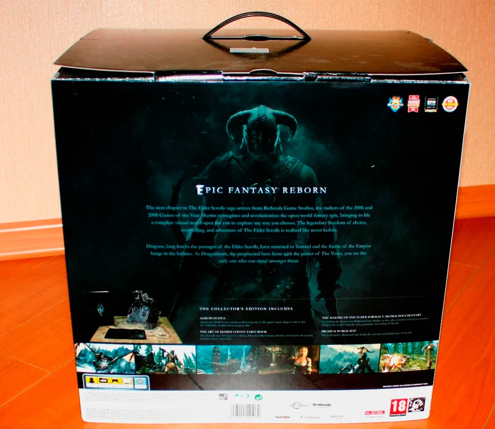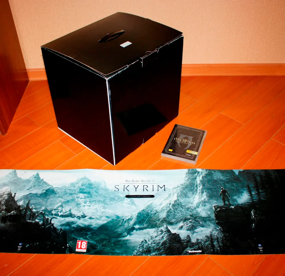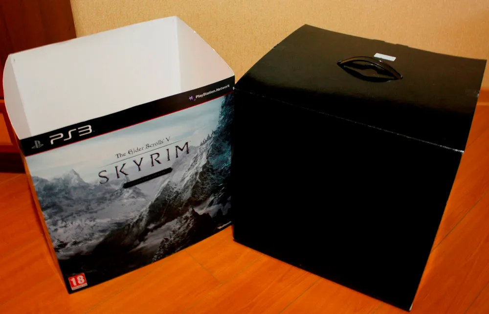 Этот пост должен был начинаться рассказом о том, как печально обстоят в нашей стране дела с по-настоящему "большими" коллекционками, которые по габаритам сравнимы с бытовой техникой. Шутка ли, даже в моей коллекции до последнего времени не было ни одного подобного издания, так как стоят они колоссальных денег, на которые накладывается доставка из-за рубежа. Но задолго до релиза решено было достать Skyrim любой ценой.