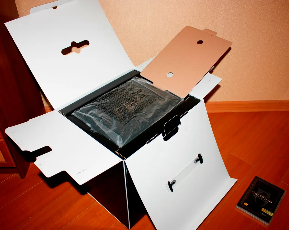 Под артбуком в той же картонной нише лежит игровой бокс, а под всей этой картонкой...