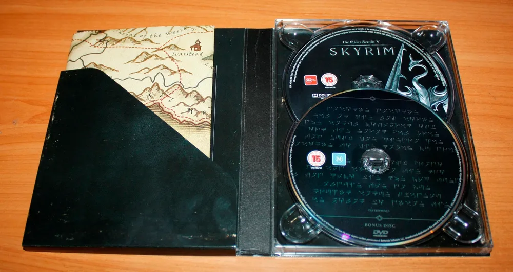 Бонусный диск, как и в Fallout 3, — цельный фильм, длиной в сорок минут и рассказывающий о всей истории разработки TES V. Здесь и базовые принципы серии, и рассказ о команде, и описание различных этапов разработки Skyrim. Смотрится на одном дыхании и сильно отвлекает от процесса написания обзора коллекционки.