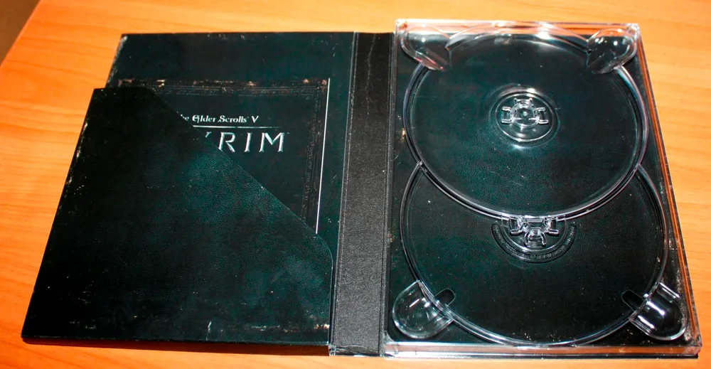 Коллекционная ценность младшей коробки побольше из-за логотипа Skyrim и отдельного возрастного рейтинга. Вы ведь уже поняли, что внутри?