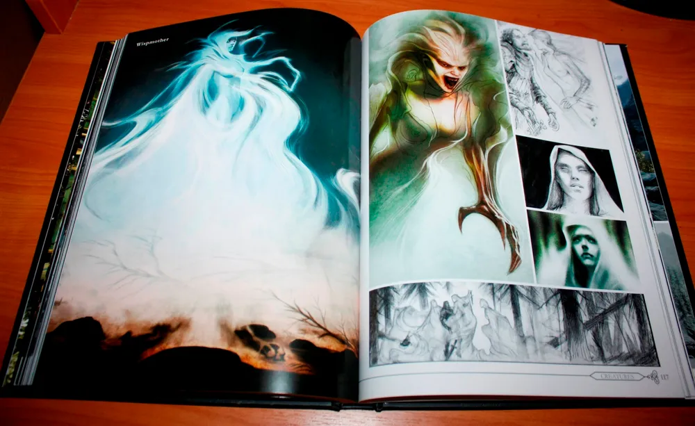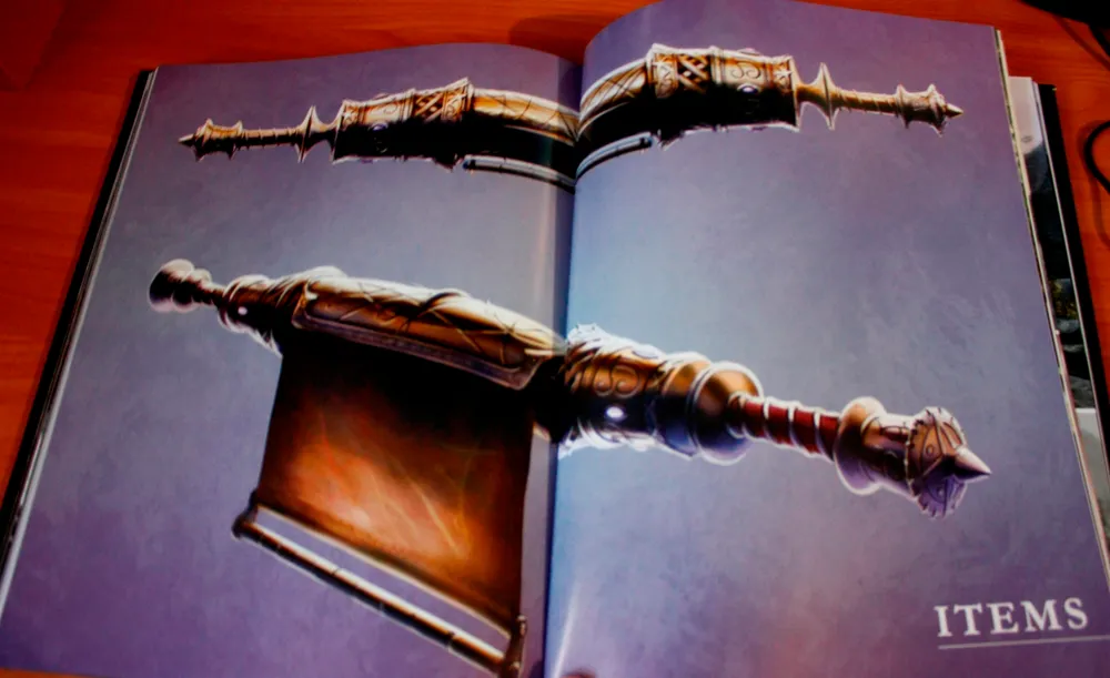 Артбук исполнен великолепно — стилизованная под кожу обложка, объемная металлизированная вставка, объем более 200 страниц. Иначе в подобном издании никак нельзя. Толщина книги впечатляет.