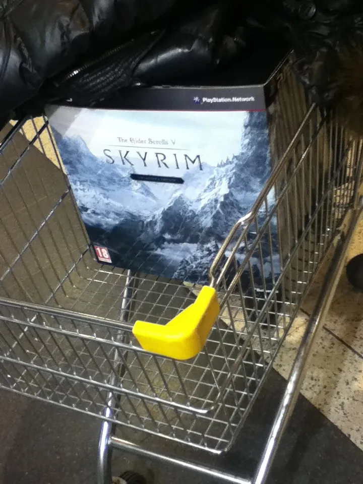 В продажу коробки поступили уже 11 ноября, вместе с миром. Но поскольку время на старте было упущено, в моих руках Skyrim Collector's Edition оказалась только в среду, 16 ноября. История о том, как я пытался отбить у интернет-магазина свой заказ, заслуживает отдельного абзаца, но рассказывать об этом не стану, так как купил я ее в итоге в обычном магазине, в ТЦ Мега. Очень пафосно было идти по торговому центру с тележкой, в которой лежит заветная коллкеционка.