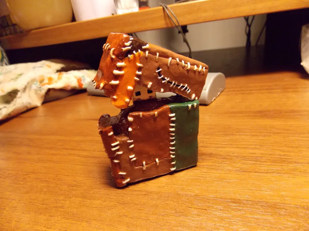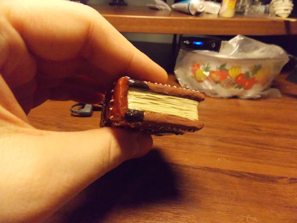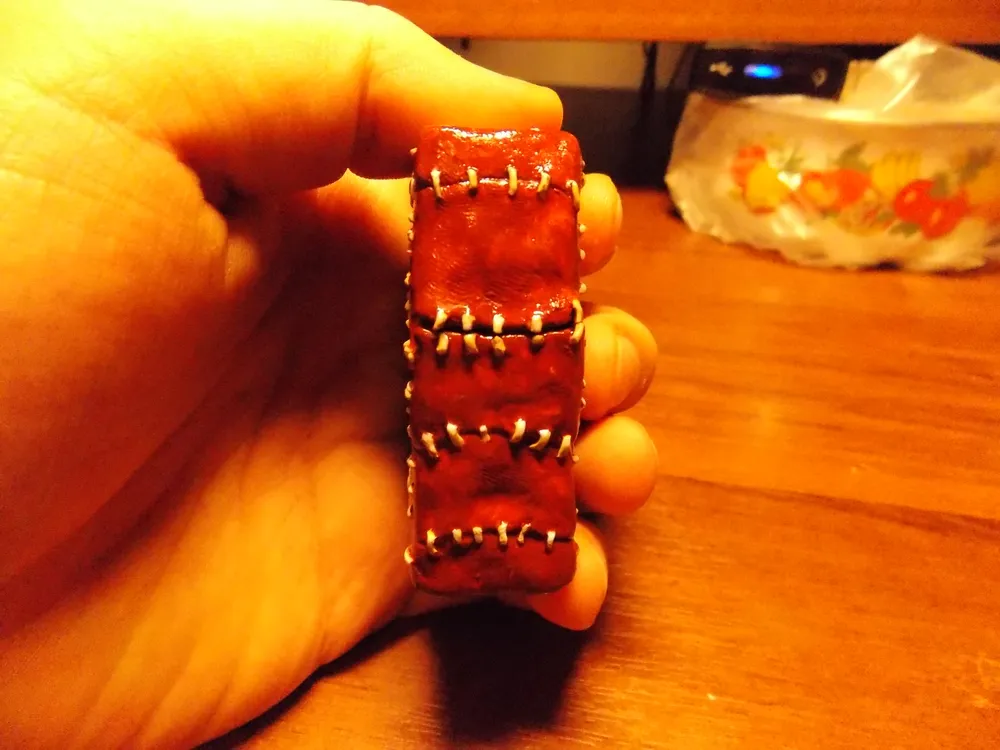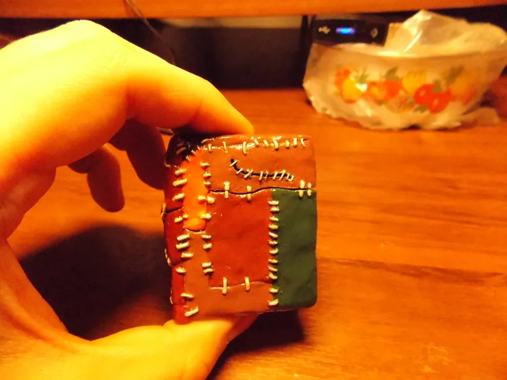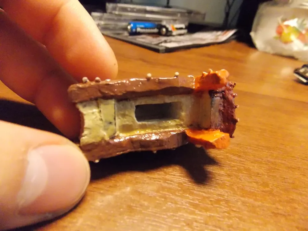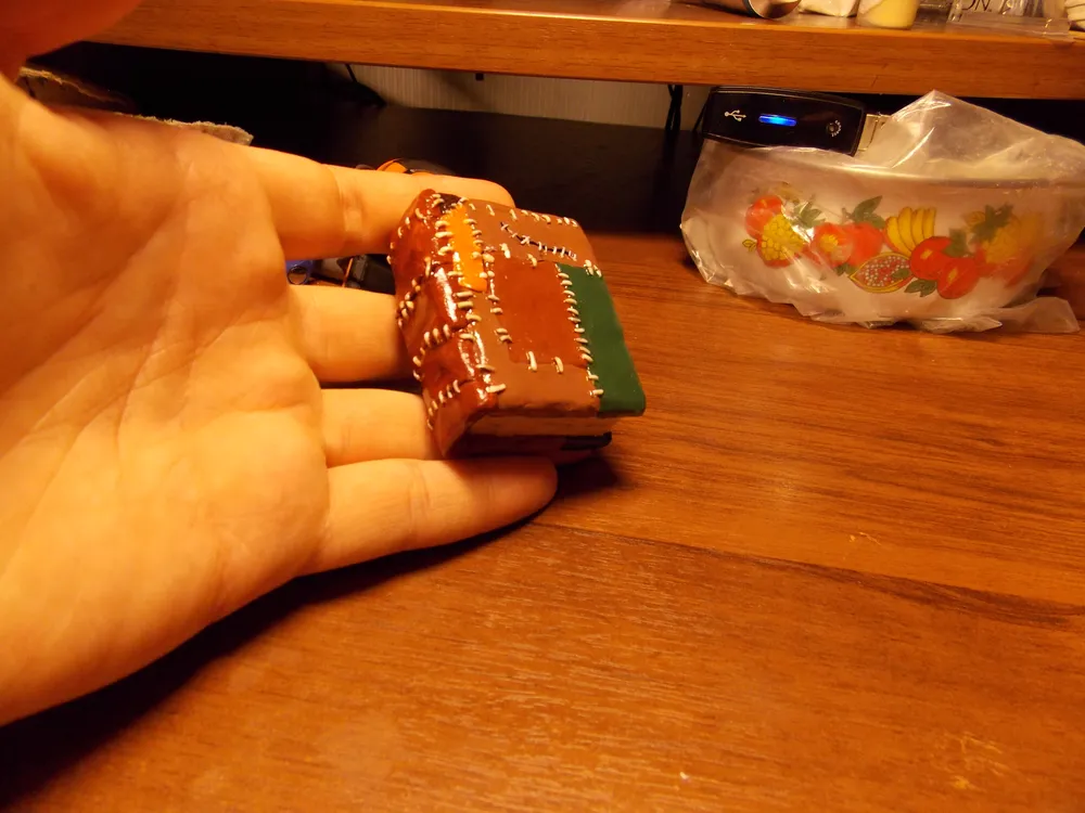 Далее опять же сопоставимо с оригиналом из игры вымеряем толщину изделия. Соединяем обе части с помощью полимерной глины (Где будет располагаться корешок книги можно залепить глиной ровно до края, с других сторон, где будет текстура страниц следует отступить от края около 4мм, т.к. ещё нужно будет сделать эти самые страницы. Так же не следует забывать, что внутри будет стоять флешка, и нужно оставить для неё полость).