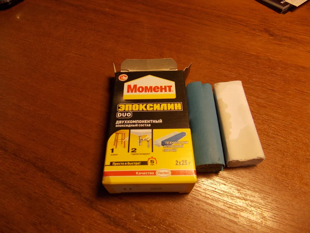 Далее приходит время эпоксилина, купить его можно в строительных и хозяйственных магазинах.