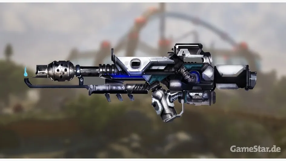 Бластер стреляет синими лазерными лучами на дальние дистанции, наносит огромный урон.