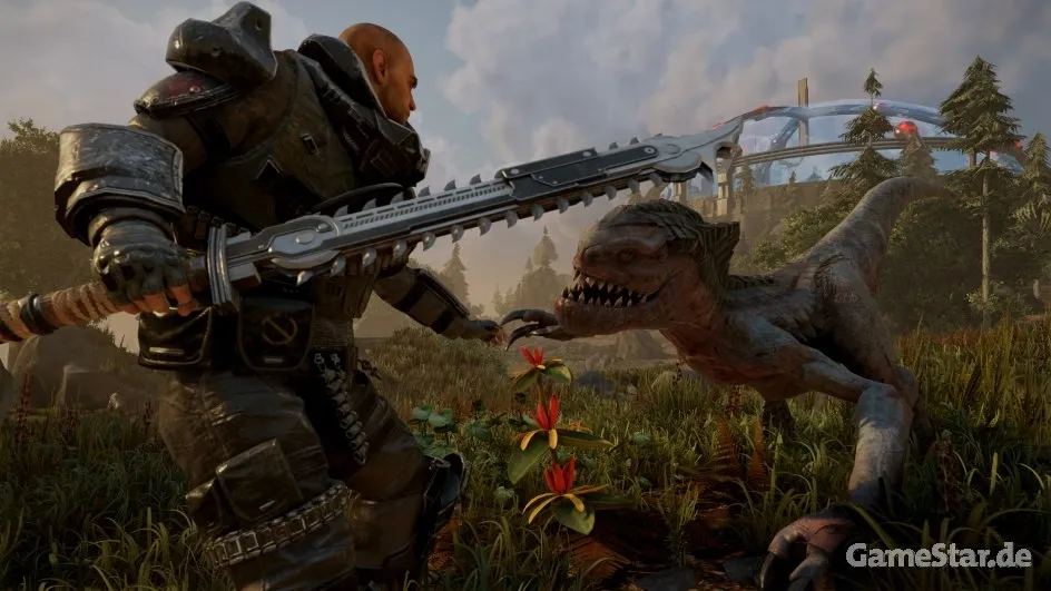 К счастью, в Элексе графику помогает вытащить на себе сеттинг. Мы видели три зоны (биома): лес, горы и пустыню. И каждая из них выглядела полной интересных мест, монстров, на которых можно устроить охоту и секретов, которые предстоит раскрыть. Простора для исследований очень много, и как сказал сам Бьёрн Панкрац, мир игры больше мира Готики 3 в полтора раза. Игрок может передвигаться как на своих двоих, так и воспользоваться джетпаком – управлять им интуитивно просто, и он очень помогает в исследовании, хотя в нём обычно недостаточно энергии для преодоления больших дистанций. Он также полезен, если вам нужно убежать от опасности.