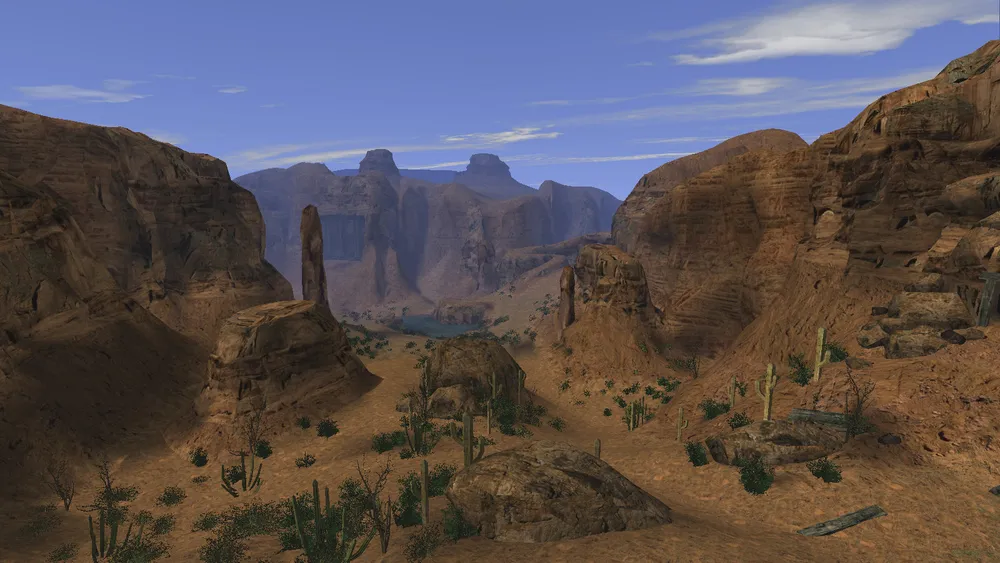 В готической Долине Рудников практически отсутствовали загрузочные экраны — только для четырёх крупнейших подземелий были отдельные зоны загрузки. Диапазон видимости в этом открытом игровом мире был огромным, так что игра поставила на колени многие тогдашние компьютеры. У геймеров, впервые лицезревших Долину со Старым Лагерем посредине и суровыми горами на заднем плане, поотвисали челюсти, потому что в то время RPG в 3D была чем-то принципиально новым. В дополнение к открытости и видимости также впечатляло вертикальное перемещение, которого ранее не существовало. Игровой мир был не просто гигантским, но и невероятно живым: динамическая смена дня и ночи и погодные условия с реалистичными грозами и ливнями вдохнули жизнь в этот мир; падающие звёзды то и дело мелькали на ночном небе, а магический Барьер, отделявший Миненталь от внешнего мира, время от времени грохотал над головами заключенных. Персонажи проводили день правдоподобно: спали, просыпались, кушали, мылись, бегали по своим делам и беседовали друг с другом [прим. подробнее в посте «Почему Готика правдоподобней современных RPG»]. Кроме того, игра радовала окружающей средой с красивой растительностью, которая выглядела максимально естественно, а также интеграцией с DirectX 7 с обеспечением трансформации и освещения [T&L]. Всё это способствовало погружению.
