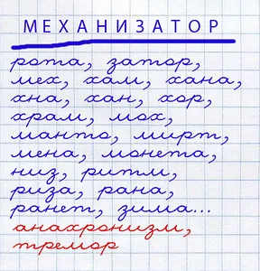 Одна из моих любимых лингвистических игр. Выбираем слово подлиннее и помудрёней, и соревнуемся в том, кто из данных букв составит больше новых слов. У кого больше — тот и молодец.