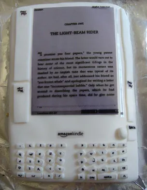 А это – торт, созданный в честь популярной «читалки» Amazon Kindle. С процессом создания съедобной электронной книги можно ознакомитьсяздесь.